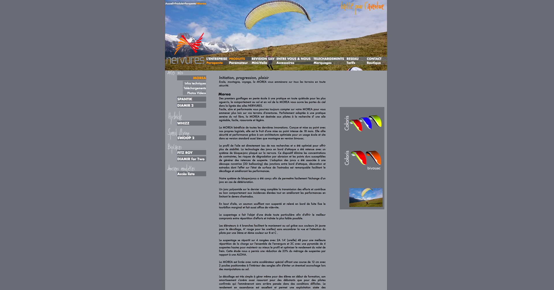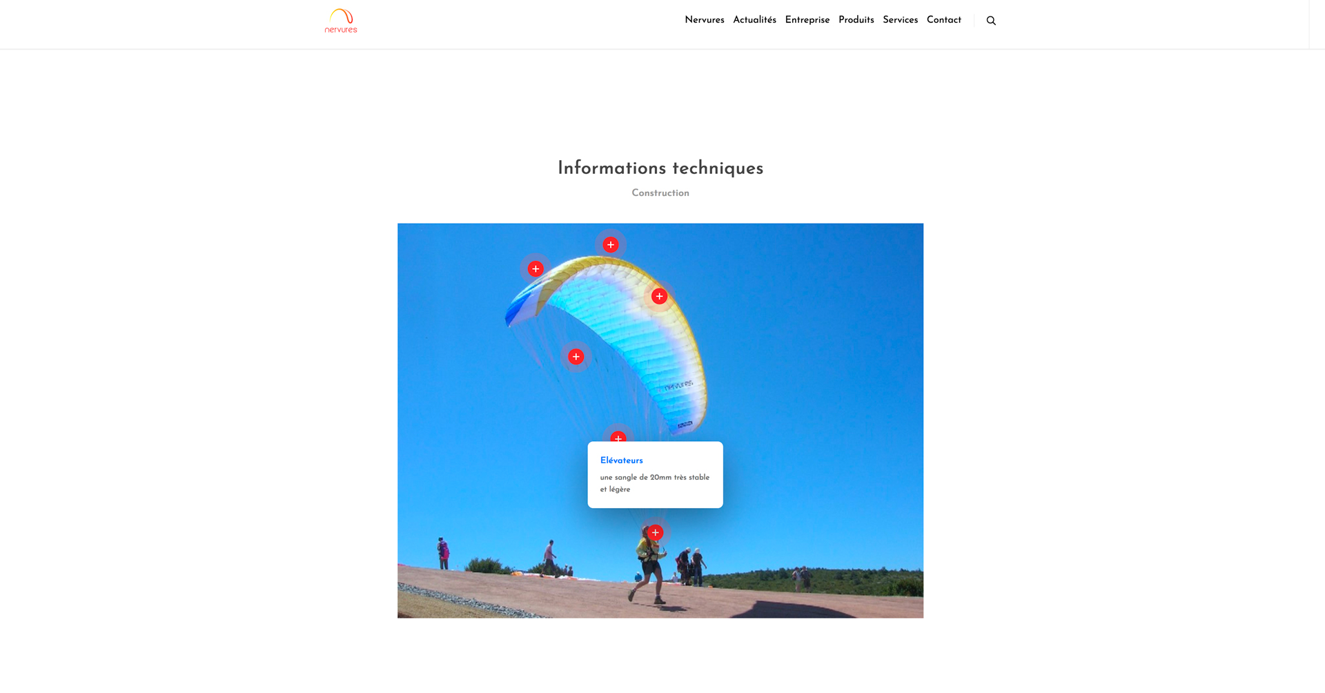Nous avons également ajouté des boutons pop-up sur une image, pour mieux montrer les information techniques sur un parapent.